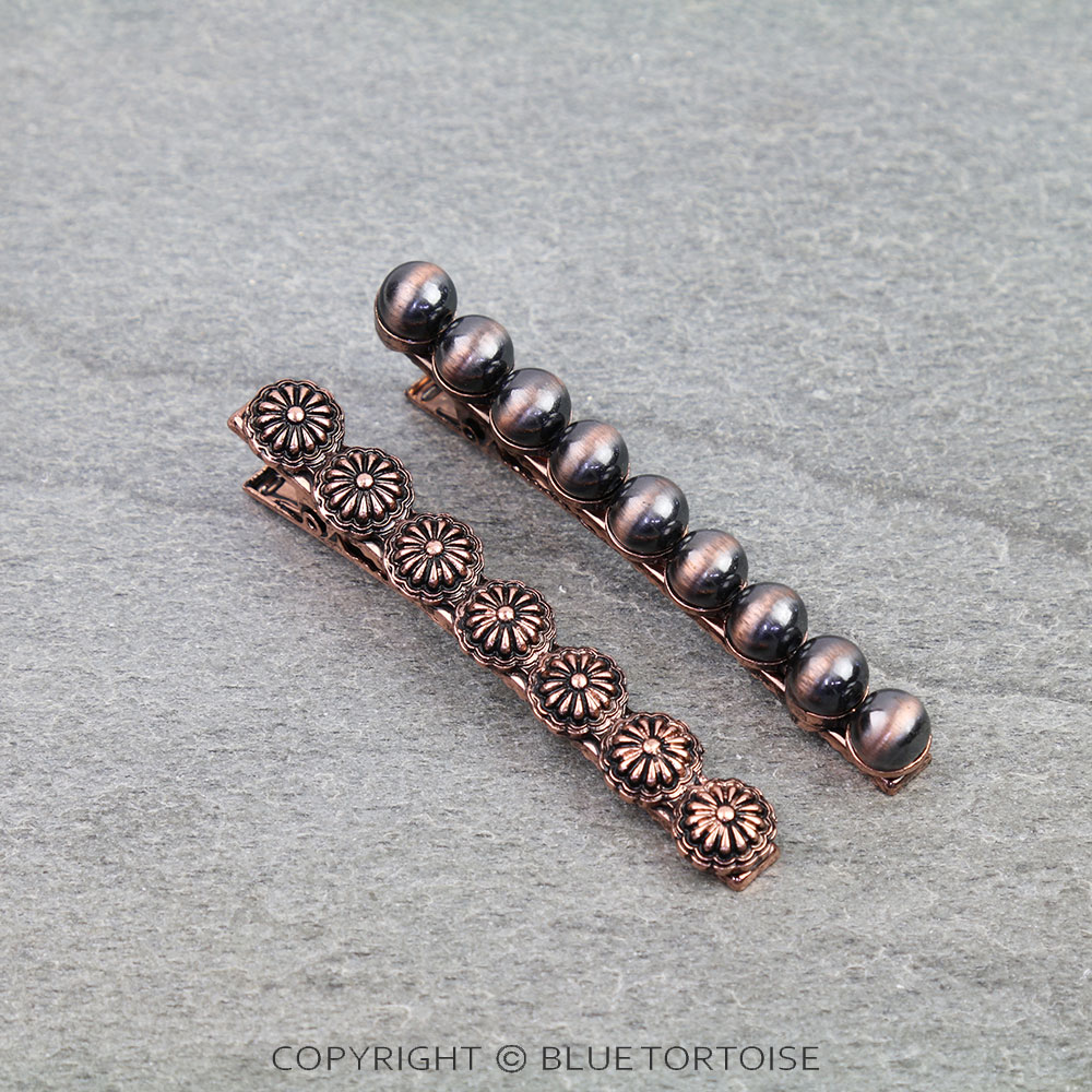 2.75″ 2 Pcs Western Concho and Navajo Style Pearl Hair Clip
