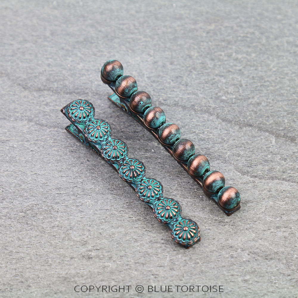 2.75″ 2 Pcs Western Concho and Navajo Style Pearl Hair Clip