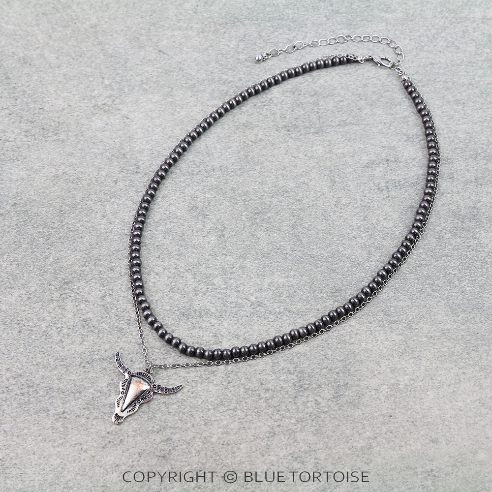 2Row Western Steer Skull Necklace