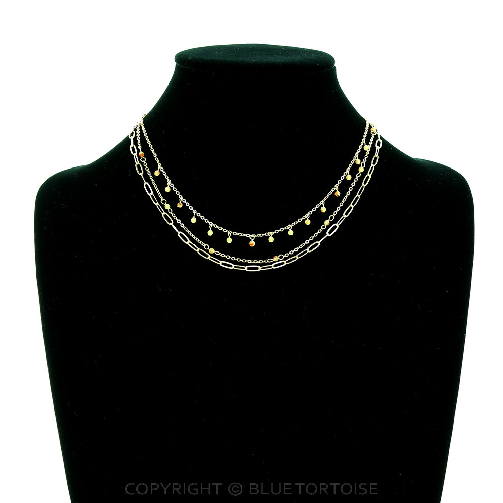 3 Row Mixed Chain Bead Necklace