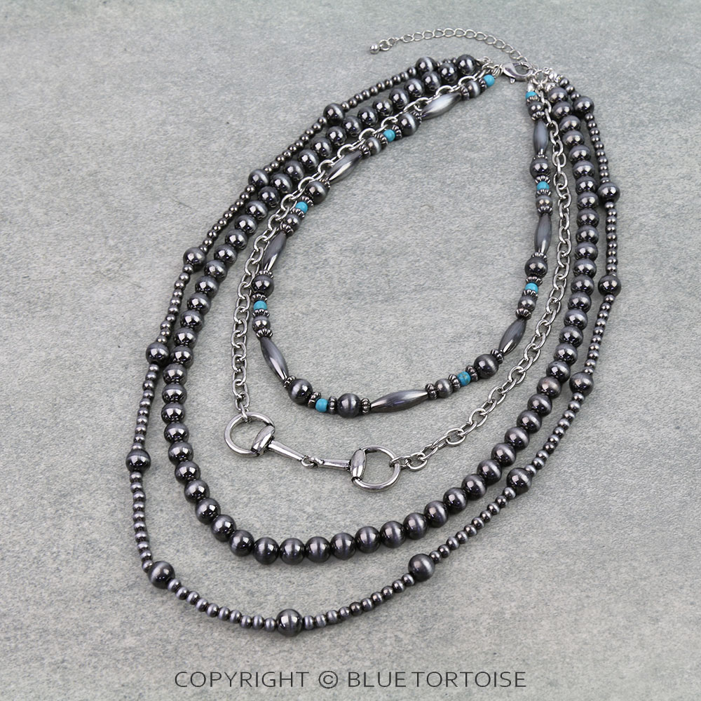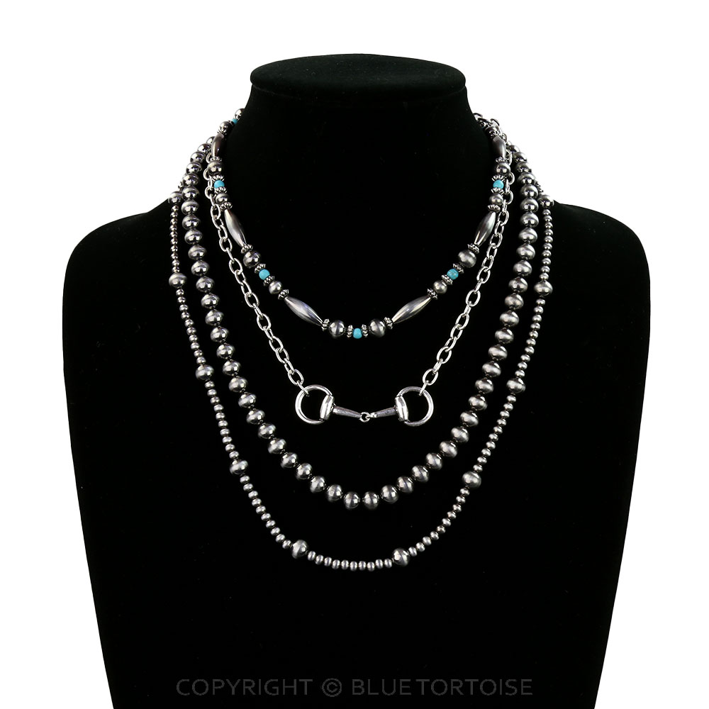 4 Layered Navajo Style Pearl Horsebit Necklace