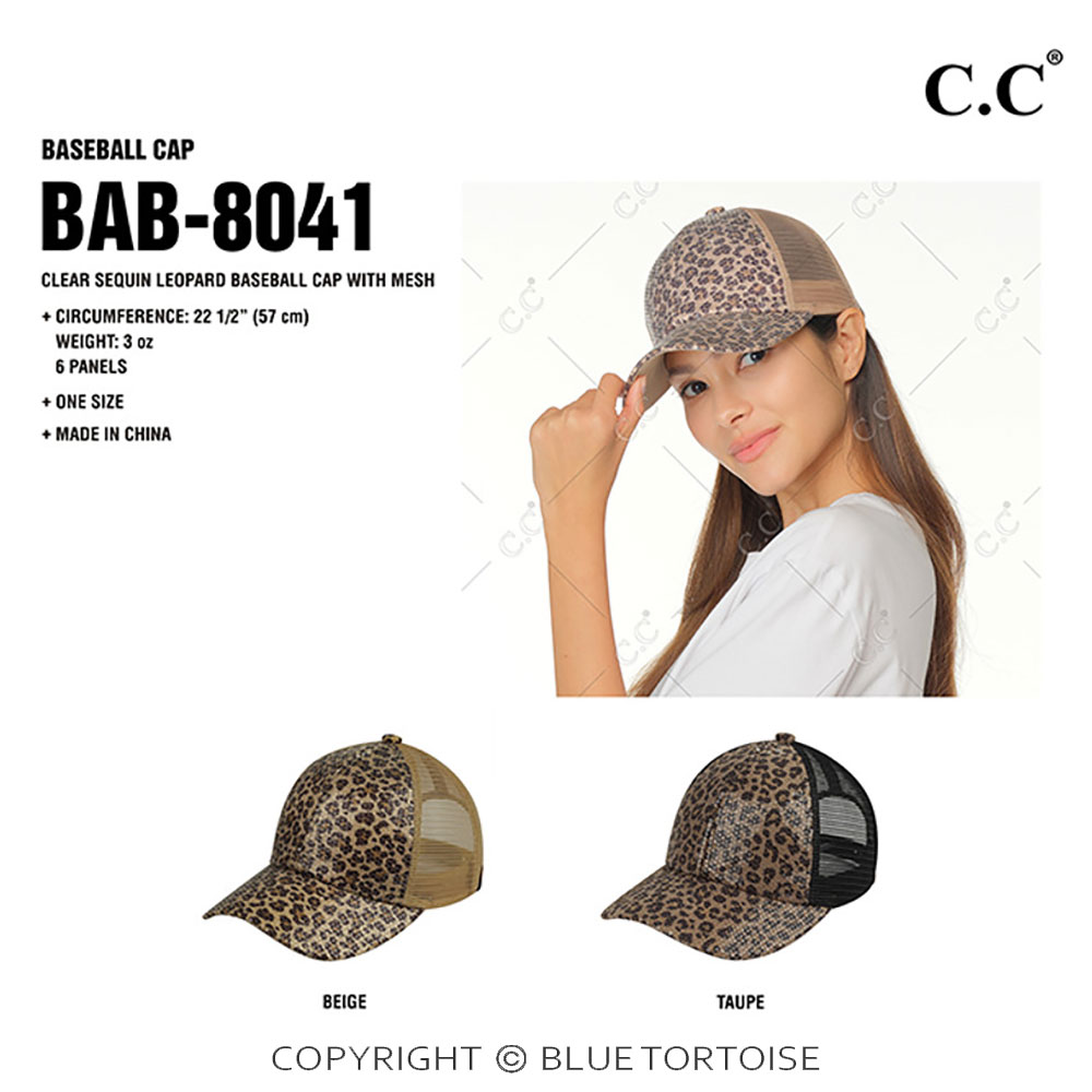 C.C Clear Sequin Leopard Baseball Cap with Mesh