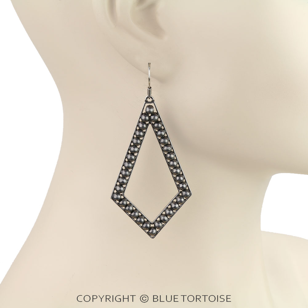 Navajo Style Pearl Geometric Shape Dangle Earrings