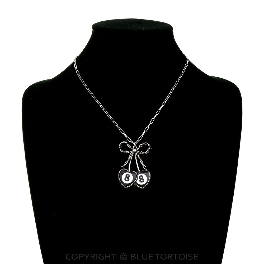 Western Barbed Wire Bow & 8 Ball Heart Necklace
