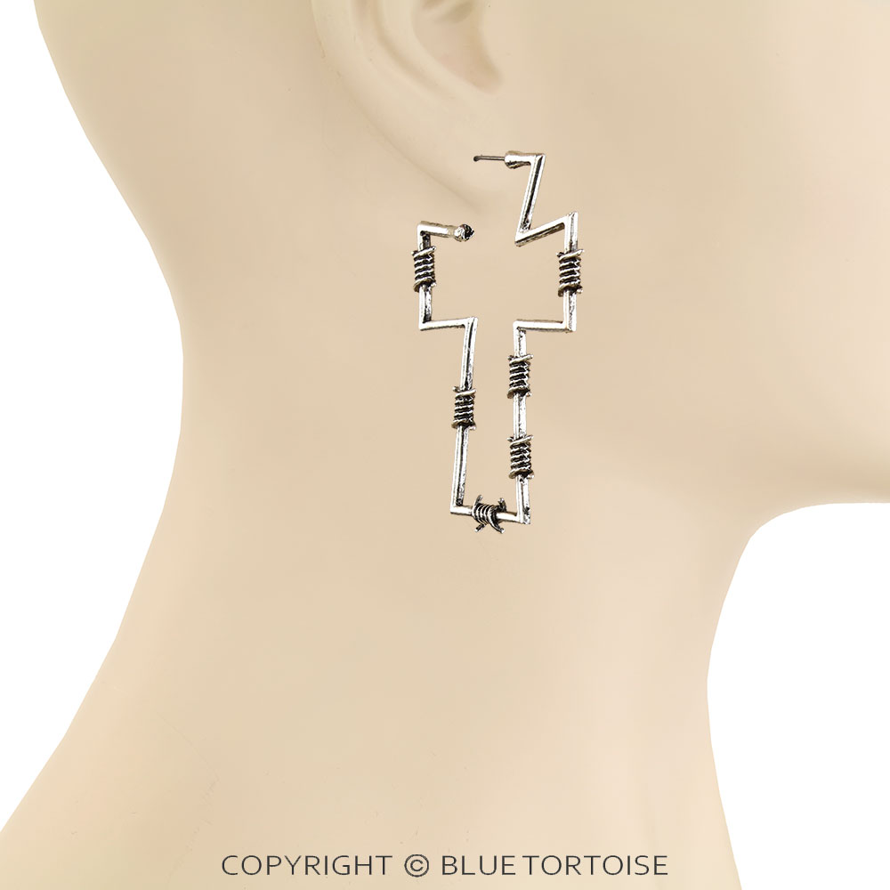 Western Barbed Wire Cross Stud Earrings