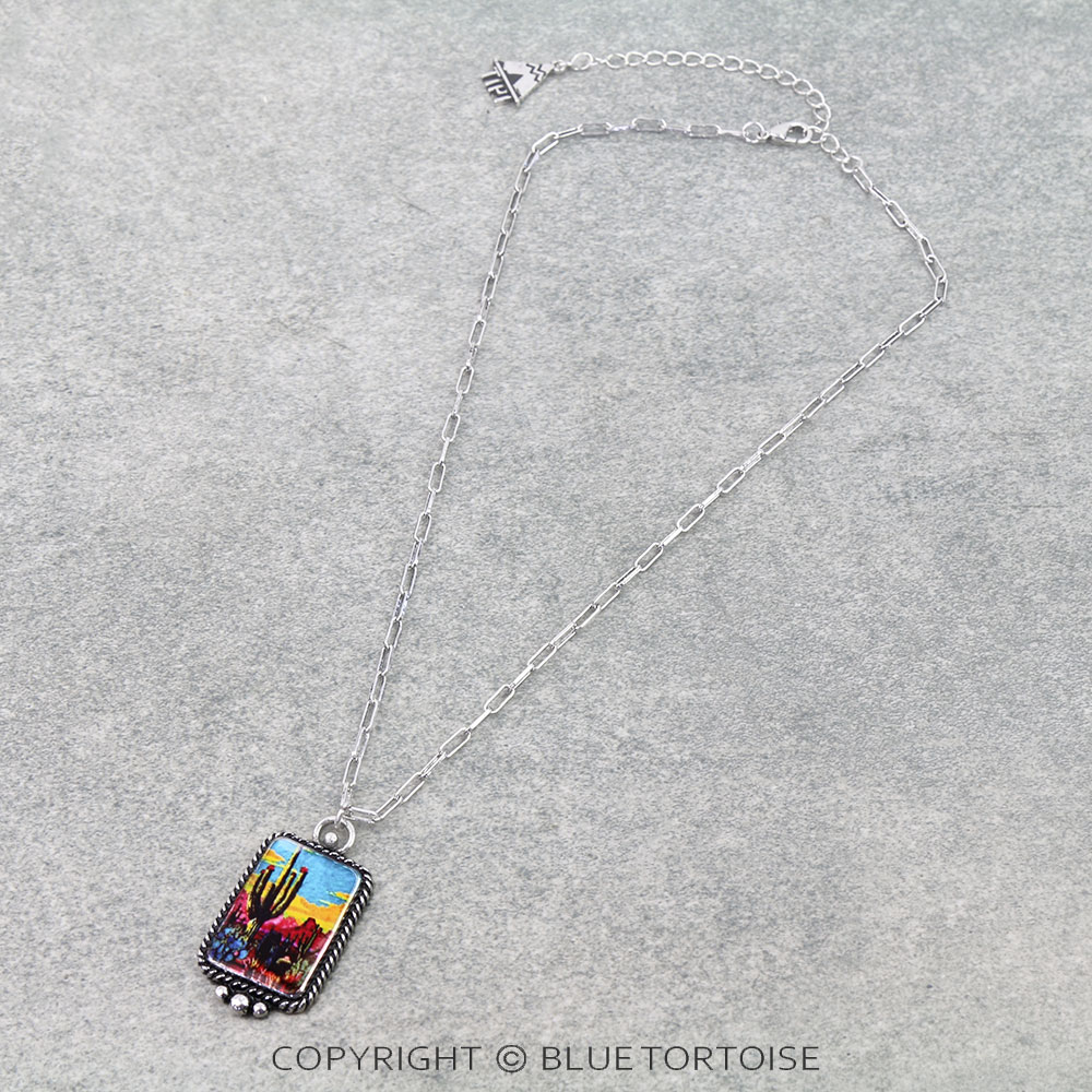 Western Cactus Scenery Print Necklace