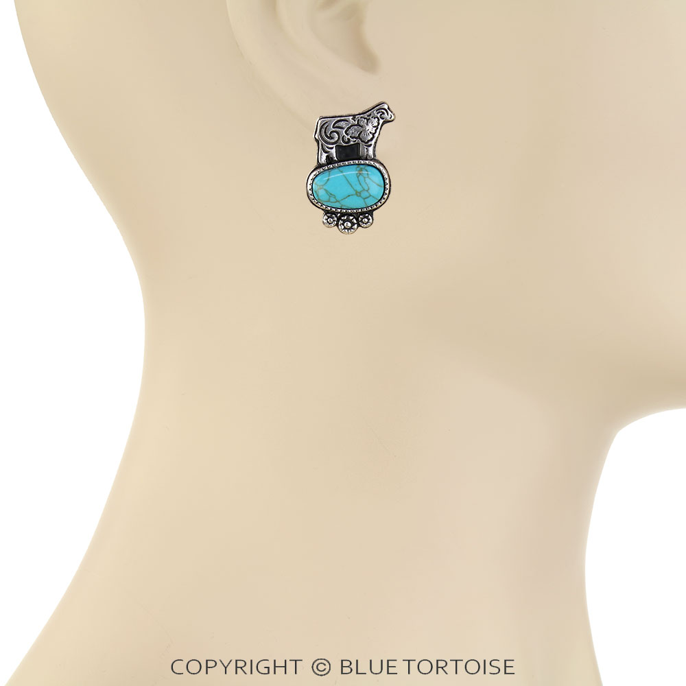Western Etched Cow Stone Stud Earrings