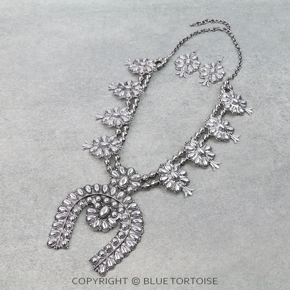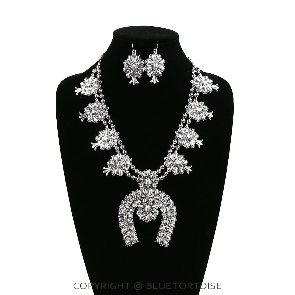 Western Metal Squash Blossom Necklace Set