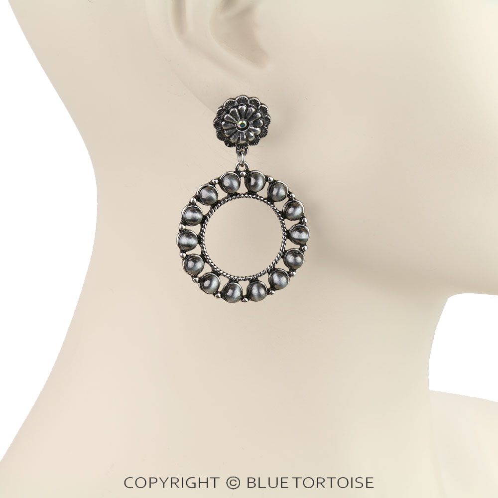 Western Navajo Style Pearl Round Concho Stud Earrings