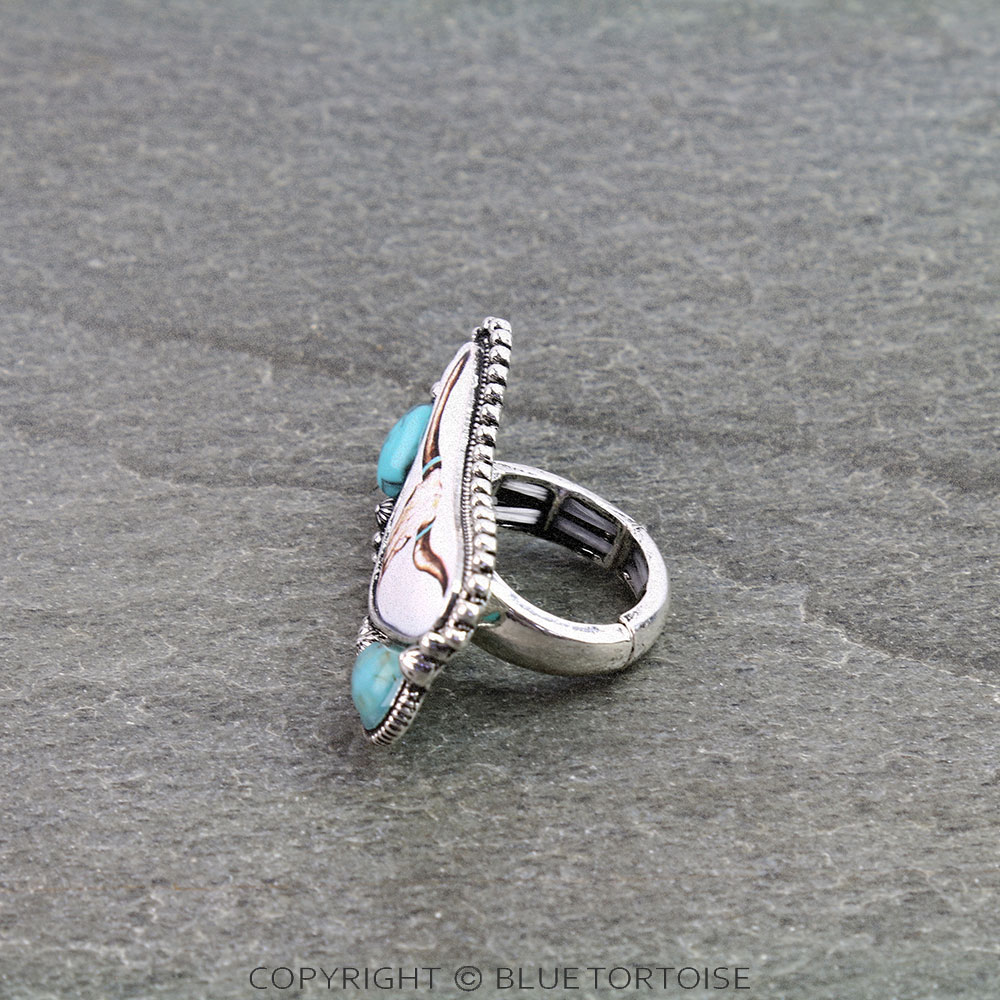 Western Steer Skull Print Stretch Ring